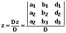 Durch die Bildung der Determinanten Dx, Dy, Dz sowie D können die Lösungen eines derartigen Systems wie folgt ermittelt werden: