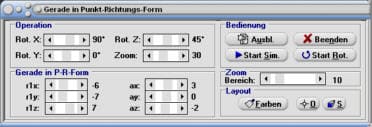 | Gerade in Punkt-Richtungs-Form | r1x,r1y,r1z,ax,ay,az | Werte der Koeffizienten r und a der Gerade in Punkt-Richtungs-Form |