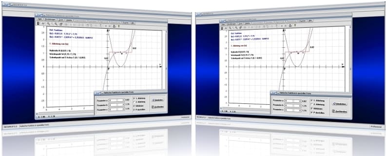 MathProf - Analysis - Software für interaktive Mathematik für das Berufskolleg, das Abitur und das Studium zum Lösen verschiedenster Aufgaben und zur Visualisierung relevanter Sachverhalte mittels Simulationen, 2D- und 3D-Animationen.