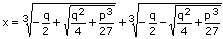 Sei x3+px+q = 0 eine kubische Gleichung in reduzierter Form und es gelte q2/4+p3/27 ≥ 0, dann ist