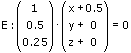| E: | Ebene in Punkt-Richtungs-, Normalen-, sowie Koordinatenform |