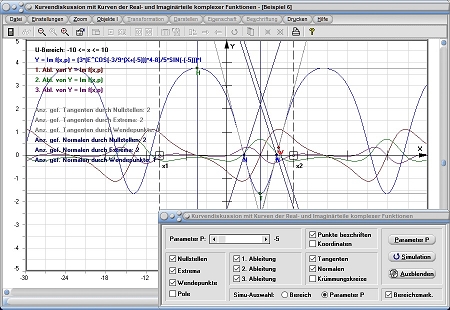 Fachthemen: Kurvendiskussion mit Kurven der Real- und Imaginärteile komplexer Funktionen