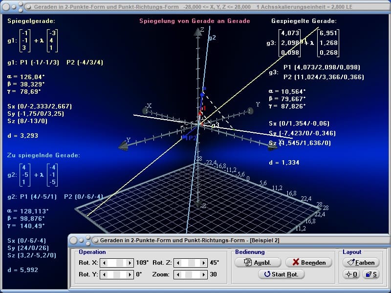 Fachthema: Spiegelungen mit Geraden in 2-Punkte-Form (3D)