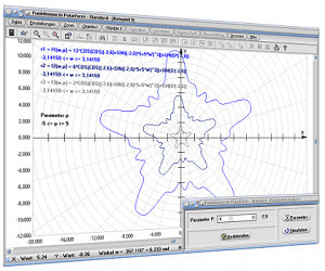 zudem die grafische Ausgabe von Kurvenscharen welche in Polarform durch Terme der Form r = f(w,u,p) beschrieben werden.
