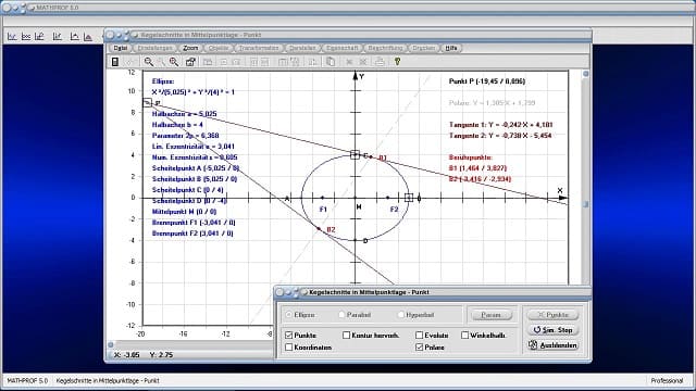 Dieser Programmteil erlaubt die Durchführung interaktiver Analysen von Kegelschnitten in achsparalleler