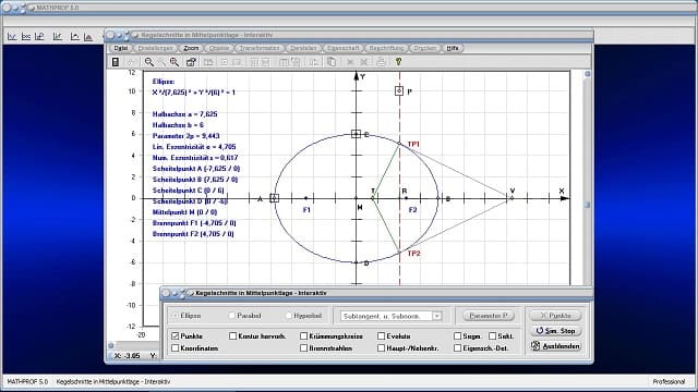 interaktiv durchgeführt werden. An Kegelschnitten stehen zur Auswahl: